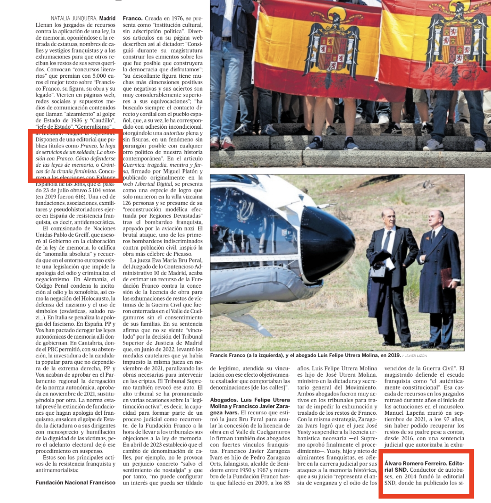 Lo más importante de este artículo es que como siempre en estos casos disparan sin saber mucho y en algo aciertan en su revolutum. Otra cosa a tener en cuenta que El Pais, lo que está haciendo es el trabajo sucio a su «amo», para la legislatura venidera. Ya saben unos apuntan y otros disparan. Unos agitan y otros recogen las nueces. Y la otra cosa, no menos importante, es que a ninguno de los mencionados en tan vomitivo artículo, nos molesta que nos cataloguen de Resistencia Franquista. Es más nos enorgullece.