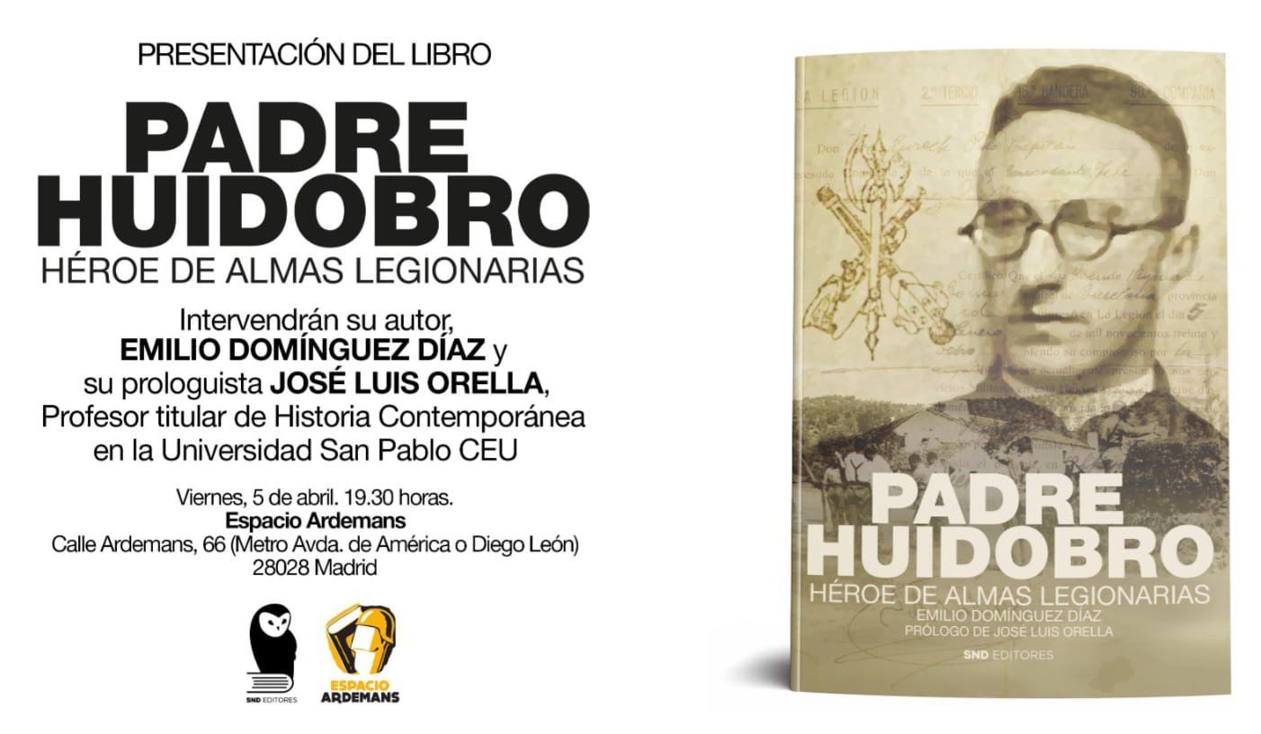 Viernes 5 Abril. 19:30 h. Presentación de “Padre Huidobro. Héroe de almas legionarias” por su autor Emilio Domínguez Díaz, con la intervención del prologuista José Luis Orella.