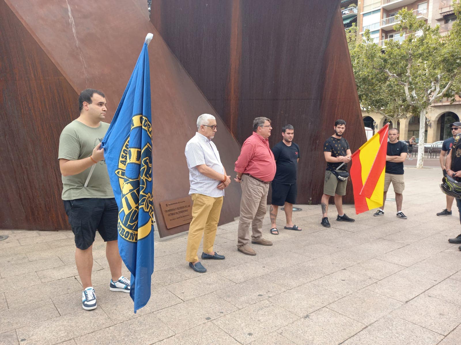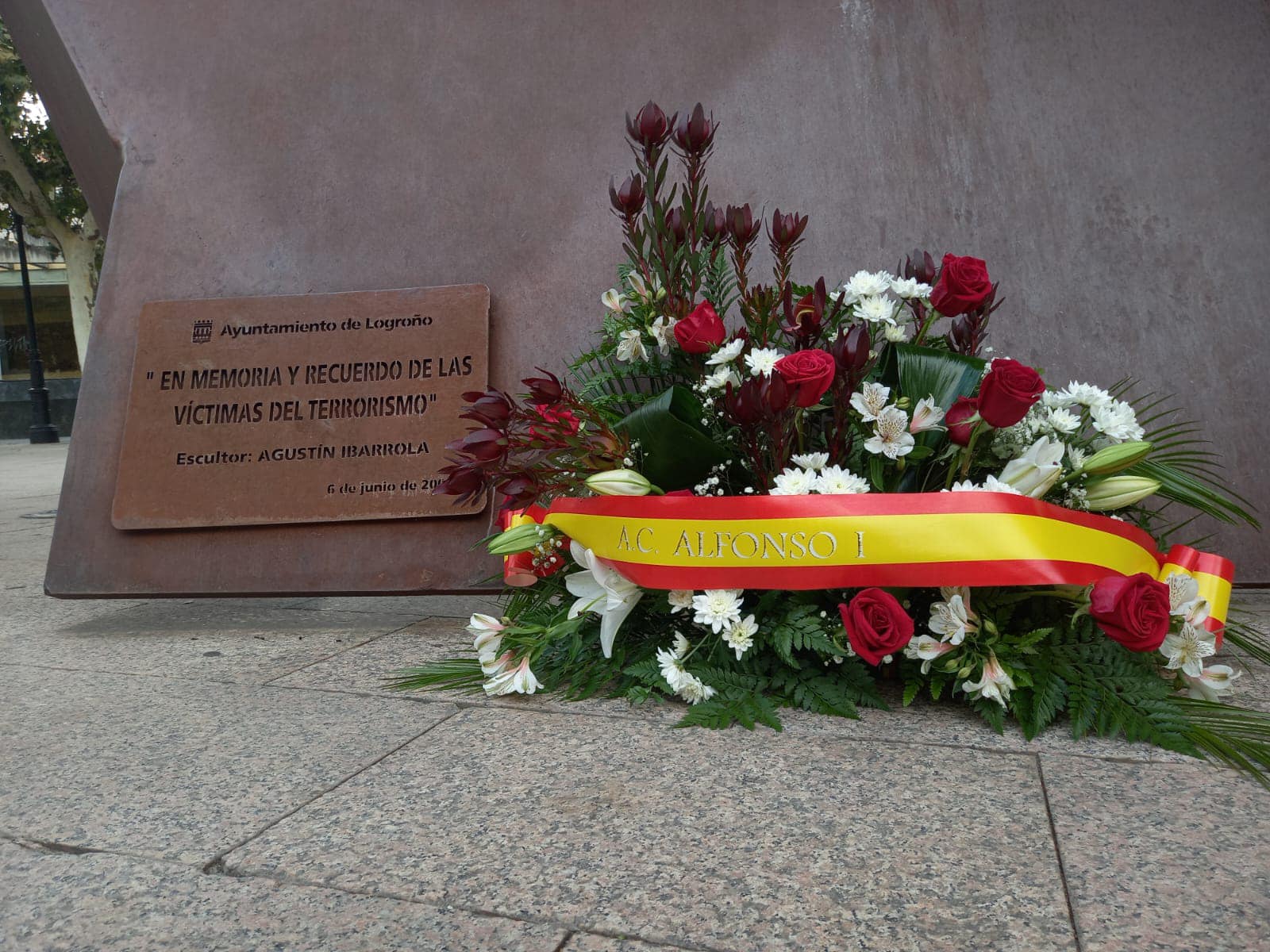 Pues hoy, en la ya tradicional ofrenda floral, que hacemos en cada ciudad donde vamos a presentar nuestro libro: “ETA, ni olvido ni perdón “.